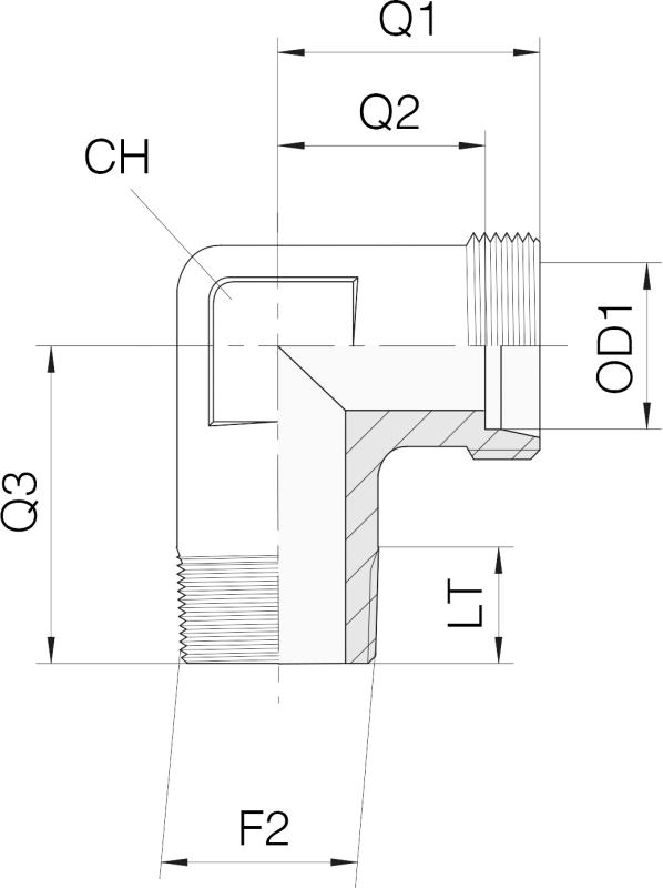 WE06LL-RK-1/8 - 90° DIN24° Male WE06LL BSPT 1/8"